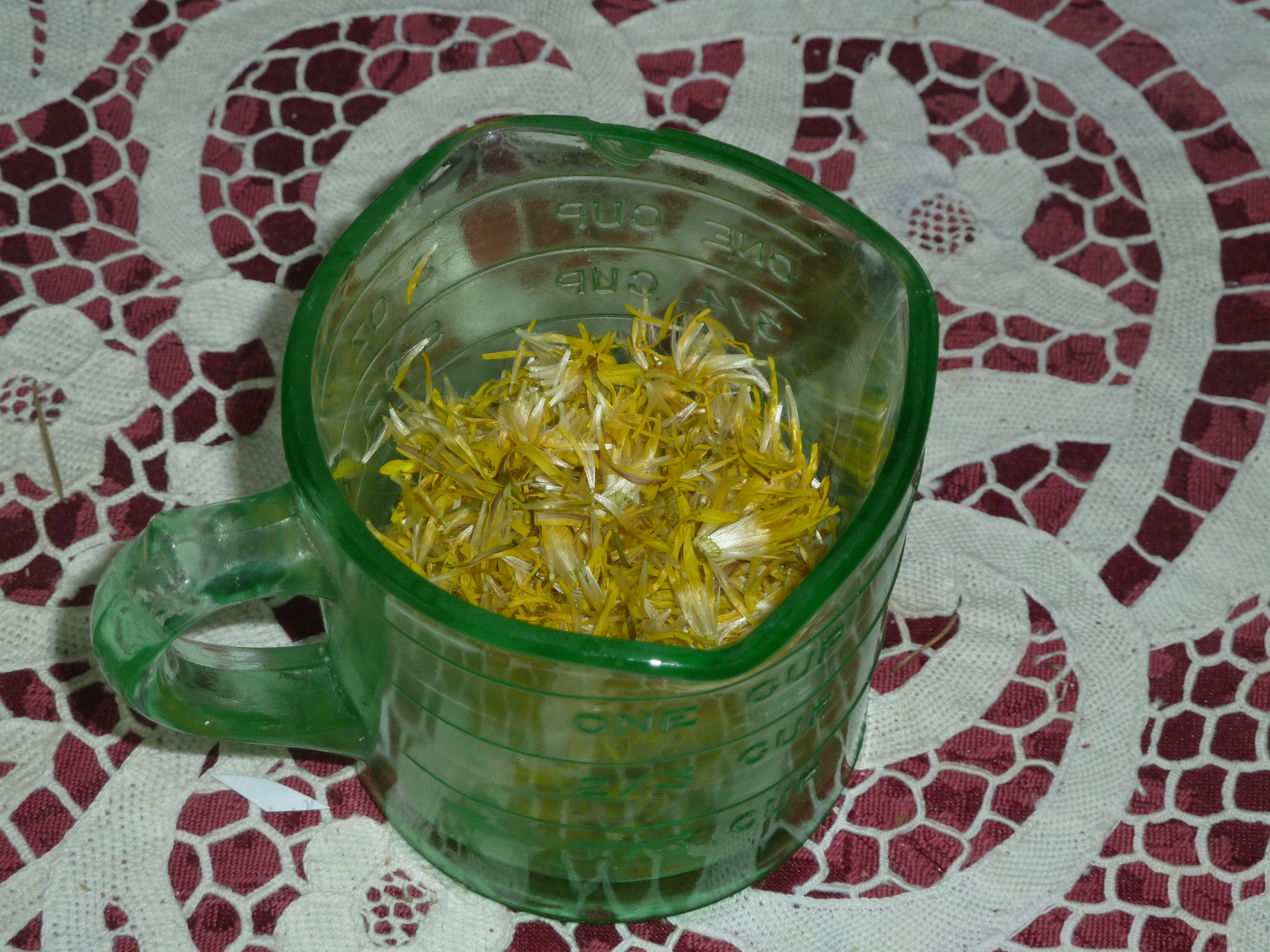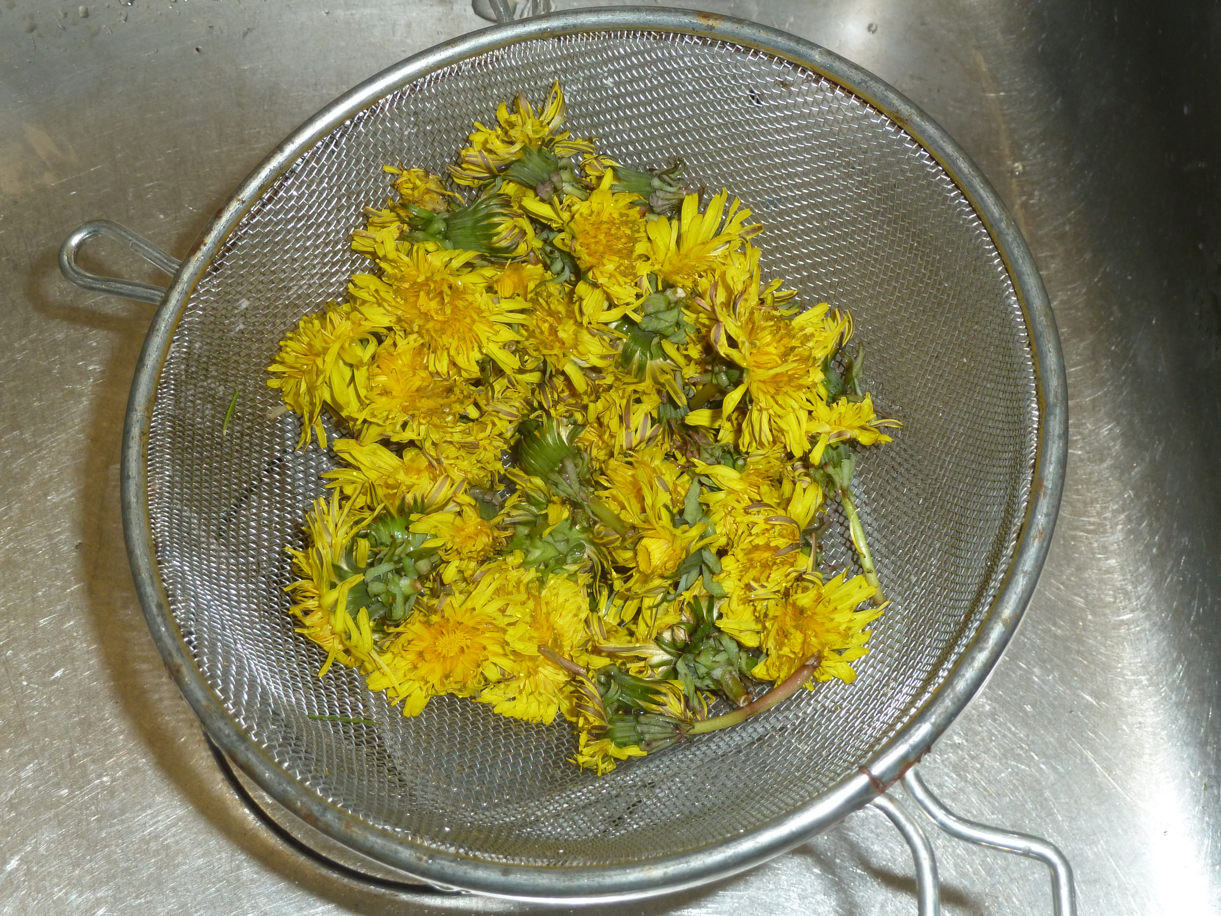 I collected a large handful of dandelion flowers and removed the yellow petals from the calyx.
