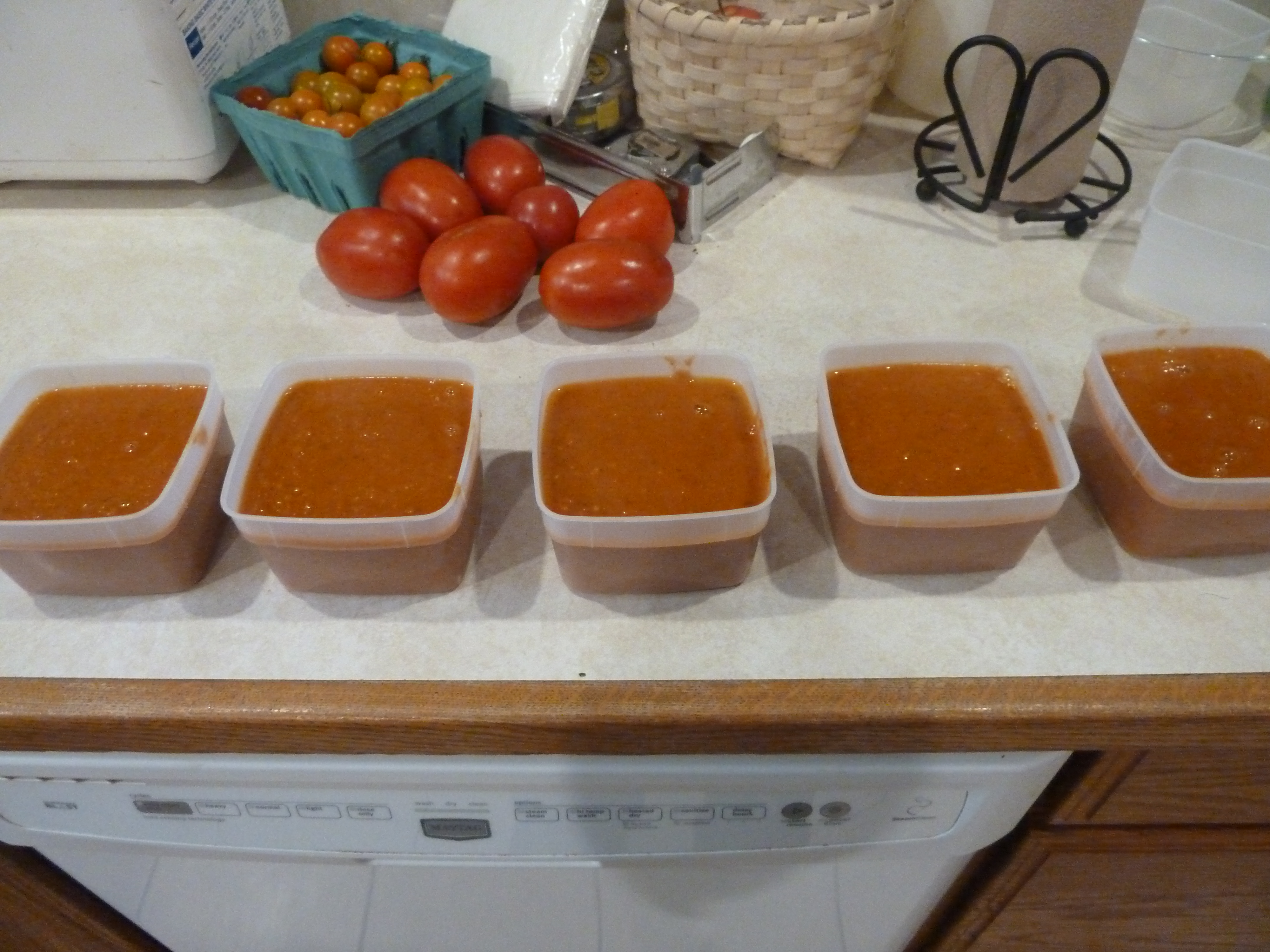 I pureed it in the blender in batches and put it in freezer boxes. I got five pints to enjoy next winter when I’m in need of a little taste of summer.