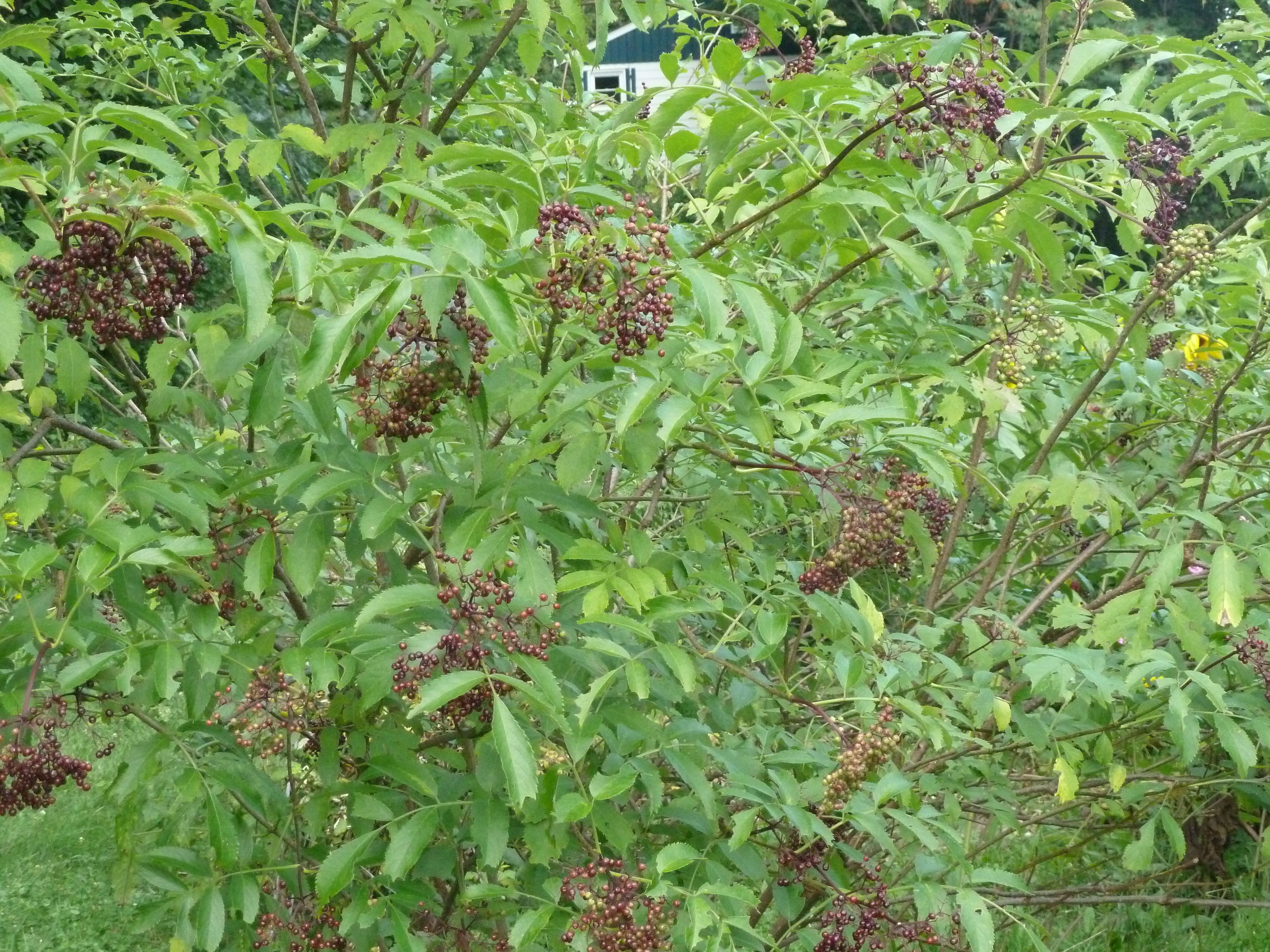 Another thing I am going to miss when my house sells is the elderberry bushes. There was a great crop this year. Here they are, just beginning to ripen.