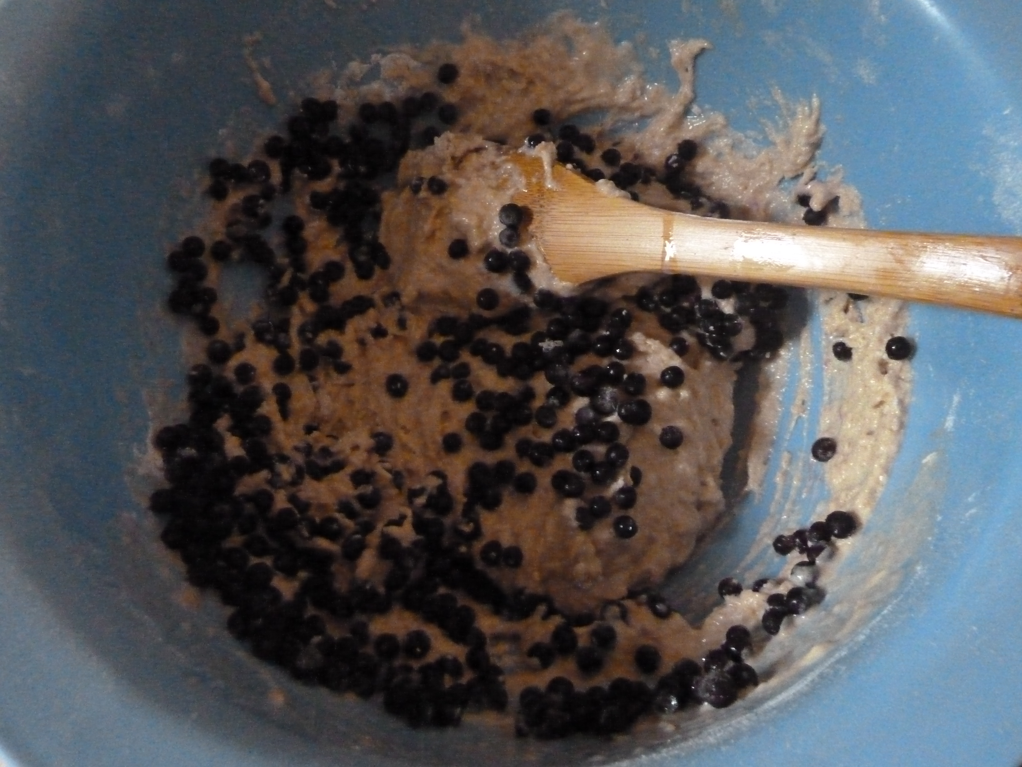 Stir the wet ingredients into the dry, then stir in 1 cup elderberries, frozen or fresh.